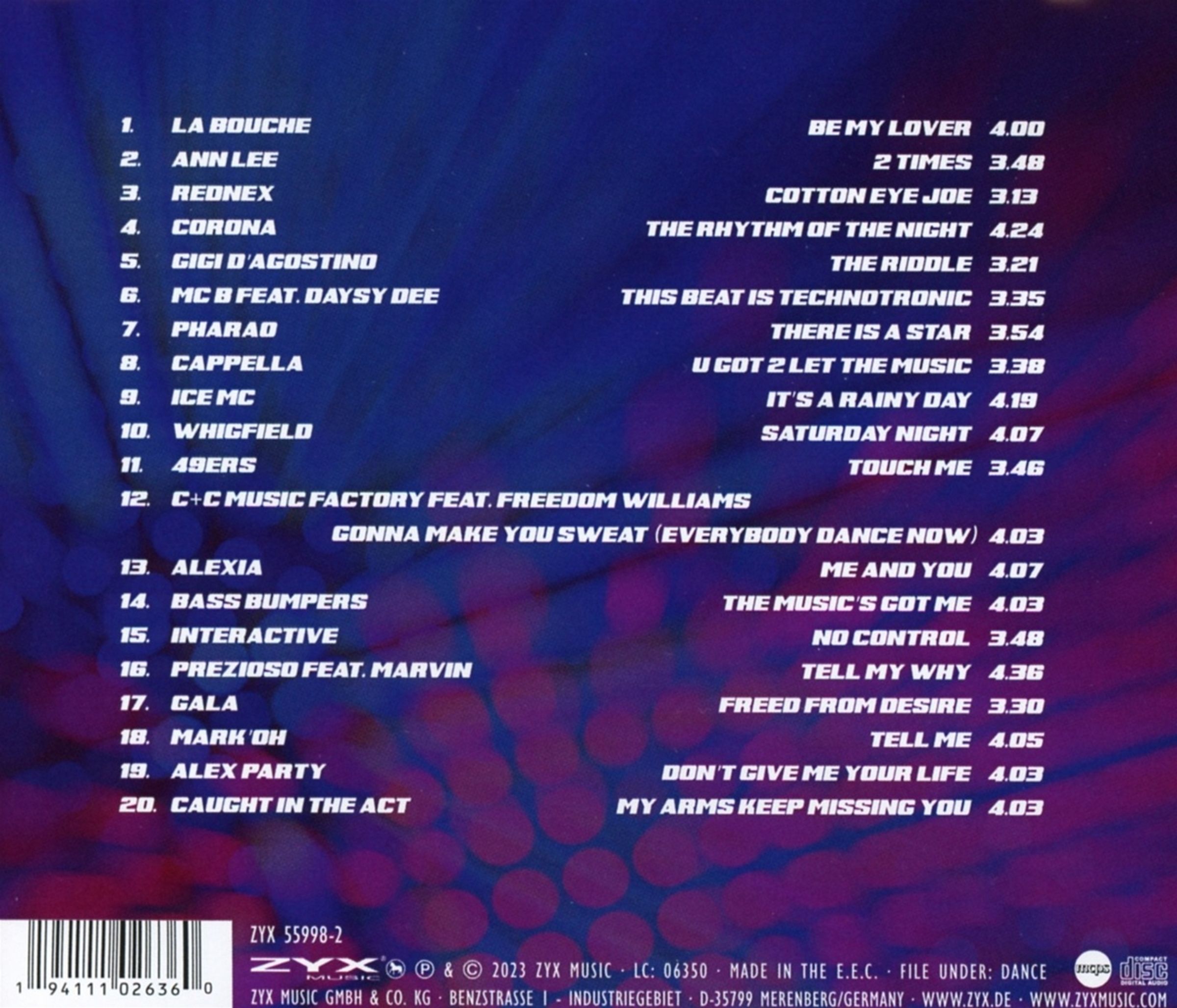 Na płycie znajdziesz starannie dobrane, energetyczne kawałki, które łączą taneczne beaty z chwytliwymi melodiami i charakterystycznym klimatem epoki. Album to idealna propozycja zarówno dla fanów eurodance’u, jak i kolekcjonerów CD z muzyką lat 90.