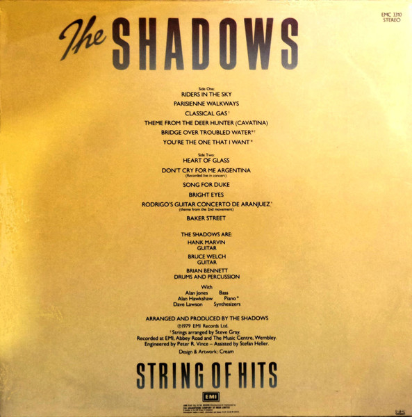 „Strings of Hits” to jeden z najbardziej rozpoznawalnych albumów w dorobku zespołu The Shadows. Wydany w 1979 roku krążek prezentuje instrumentalne interpretacje światowych przebojów w charakterystycznym, gitarowym stylu grupy. To doskonała propozycja dla miłośników klasycznego rocka instrumentalnego oraz kolekcjonerów zagranicznych winyli z lat 70.