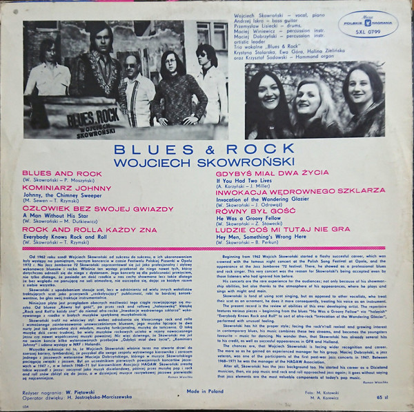 Wojciech Skowroński, wokalista, pianista i kompozytor, był pionierem polskiego bluesa i rhythm and bluesa. Na albumie Blues & Rock prezentuje swoje najbardziej rozpoznawalne brzmienie – oparte na dynamicznym pianinie, mocnej sekcji rytmicznej i wyrazistym, pełnym emocji wokalu. To muzyka inspirowana amerykańskim bluesem i rockiem, ale jednocześnie mocno zakorzeniona w realiach polskiej sceny muzycznej lat 70.